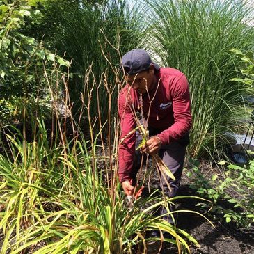Pruning, dead heading perennials, transplants, and all general garden care.
